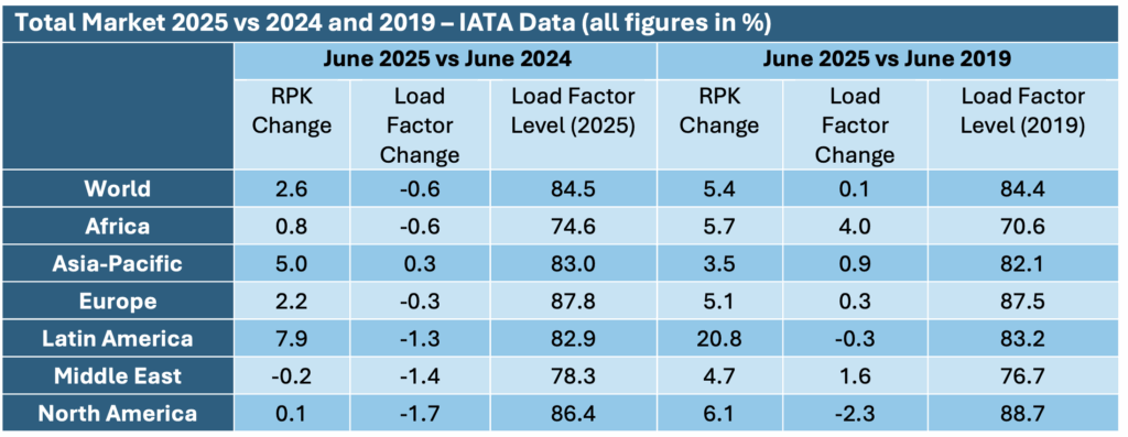 The main change between the two forecasts is a modest downgrading of the outlook for RPK growth and profitability based on actual industry performance in the first half of this year. By historical standards the global financial outturn for 2025 is likely to be quite good absent any major external shocks.